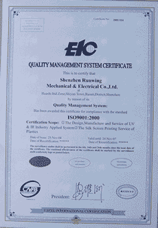 ISO9002:品质体系 生产、安装和服务的品质保证模式;(增加生产、安装)